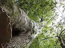 The western border of Coed Kensington is informally marked by the ‘Beech Avenue’. The beech avenue was planted in 1837; since then however, many of the original trees have died and due to their similar age the others have all become susceptible to the parasitic fungus Ganoderma sp.. Since the discovery of the fungus they have been subjected to a tomography survey which deemed them unsafe. Many of the mature standards however have become very favourable summer roosts for the local bat populations, as their positioning creates a clear linear glade, which is used by the bats for navigation, in the damp woodland which is a key habitat for many the bat's invertebrate prey species. Legislation protects the bats and their roosts from disturbance and so the remedial work needed to allow the Beech Avenue to be re-opened must follow a comprehensive bat survey to determine the number of trees affected and by which species of bats and how many. Once this data is ascertained, the impact of the removal of these trees on the bat populations can be assessed, and a plan of works can be established. This work will not be able to be started until the bats have vacated these summer roosts and even then will have to be sympathetic, probably involving soft-felling techniques, where the limbs will be cut and lowered to the ground, to leave pollarded standards.[9]