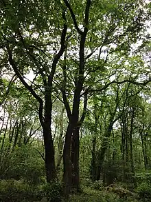 The Sycamore wood lies in the north-west corner of the park and is topographically the highest point in the park. The site would have been categorised as ancient woodland until the end of the 19th century when it was felled and replanted with sycamore trees, to provide fuel for the house's biomass burners. They too were left unmanaged when the house was abandoned and have grown too tall and too close together. The modern management of this area is therefore to thin out the sycamore and add in native broadleaf trees (oak, hazel, birch and beech) to improve the health and biodiversity of the woodland. The most notable species in this area is the bluebells that appear in mid-April.[8]