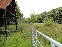 Rhos pasture is the Welsh term (meaning 'rough' pasture) to describe grassland dominated by rushes and rank grasses, specifically purple moor grass, that occupies poorly drained often nutrient-poor soil.[11] "The long, tough grasses provide cover and shelter, making rhos pastures a favoured habitat for birds"[11] and invertebrates. The area in the park is found in the west at the most southerly point of the park. It is a small area that is enclosed by a strained rylock fence. The area is too wet to be mown throughout most of the year and so is grazed by a couple of cattle at the end of the growing season. This is the extent of the management in this area.