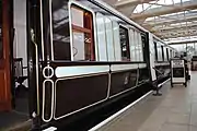 LNWR 249 12-wheel first class diner Built in 1901. Used for staff on royal train from 1905 to 1967, preserved that same year. Restored and operational.