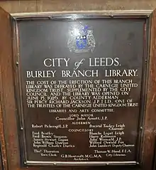 - ↑ Humble, Liz (January 2018). Burley Branch Library, Leeds: Heritage Statement (Report). Humble Heritage. Access via leeds.gov.uk, within planning application 18/00122/LI.
