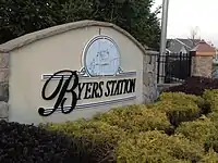 Byers Station Historic District is a national historic district located in Upper Uwchlan Township, Chester County, Pennsylvania, United States. The district includes 26 contributing buildings in the crossroads community of Byers Station. The buildings date to the 19th century and include a number of notable Italianate style buildings. Notable buildings include a variety of residences, a factory, a Masonic lodge (1894), and the former Byers Hotel (c. 1874). The community grew around the Byers railroad station, after its opening in 1871, and continued after plumbago (graphite) was discovered in the area in 1875.[2]