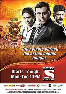 CID Kolkata Bureau is a Bengali crime detective television series in which Sudip Mukherjee plays the central role as the Senior ACP and the chief of the CID team who pursue criminals through detailed investigation.[1] Launched in November 2012, it is a spin-off of the Hindi TV series CID.[1] [2][3][4]