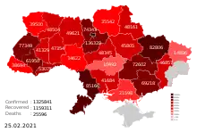 - ↑ "Ukraine Coronavirus: 500,865 Cases and 9,145 Deaths - Worldometer". worldometers.info. Retrieved 12 November 2020.