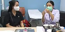 The Ministry of Health on 24 June 2021 established a Steering Committee for the nationwide COVID-19 vaccination campaign. The Steering Committee consists of 5 subcommittees, including: Subcommittee on receiving, transporting and preserving vaccines, Subcommittee on Immunization, Subcommittee on Safety of Vaccination, Subcommittee on quality supervision of vaccines, Subcommittee on Information Technology application of Vaccination management and communication and permanent office of the Steering Committee.[168] The National Steering Committee for the COVID-19 vaccination campaign is headed by the Minister of Health. The command center of the vaccination campaign is located at the Ministry of Defence, led by a Deputy Chief of the General Staff of the People's Army.[169] It is expected that there will be eight vaccine storage warehouses, including one warehouses in each military districts and one at the High Command of Capital Hanoi. When the vaccine arrives at the airport, it will be immediately transferred to the military warehouse. Then the vaccines will be transported by military vehicles to 19,000 vaccination points nationwide.[170][171]