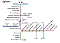 - ↑ "Crenshaw/LAX Line Operations Plan Being Debated, Will Affect Green Line". streetsblog.org. June 22, 2018. Archived from the original on June 8, 2019. Retrieved December 6, 2018.