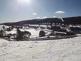 Cabramurra was the third-highest permanently inhabited town on the Australian continent, situated at 1,488 metres (4,882 ft) in the western Snowy Mountains (or South West Slopes) of the Great Dividing Range, in the state of New South Wales. It is 82 metres (269 ft) lower than Dinner Plain in Victoria, and 272 metres (892 ft) lower than Charlotte Pass Village in New South Wales. The last residents are scheduled to leave the town in January 2018 with the current workforce housed being replaced with drive-in/drive-out staff.[2] The name Cabramurra may be derived from Wiradjuri gambirra marra ("crooked hand").[3]