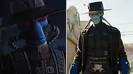 ![]() Cad Bane's animated and live-action depictions from The Bad Batch (left) and The Book of Boba Fett (right) | |