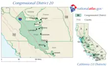 California's 20th congressional district is a congressional district in California including much of the southern and southeastern part of the state's Central Valley. The district is currently vacant.