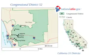 California's 52nd congressional district is a congressional district in the U.S. state of California. The district is currently represented by Democrat Juan Vargas.