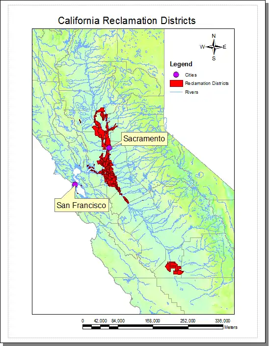 California Reclamation Districts are legal subdivisions within California's Central Valley that are responsible for managing and maintaining the levees, fresh water channels, or sloughs (pronounced slü),[1] canals, pumps, and other flood protection structures in the area. Each is run autonomously and is run by an elected board and funded with taxes to property owners in the local area. However, the Central Valley Flood Protection Board[2] has the power to determine that a district is not satisfactorily maintaining the structures and causing the California Department of Water Resources[3] to declare an area as a maintenance area.
