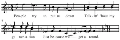 Call and response is common in modern Western popular music. Cross-over rhythm and blues, rock 'n' roll and rock music exhibit call-and-response characteristics, as well. The Who's song "My Generation" is an example:[21]