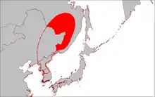 In Russia Callipogon relictus inhabits Amur Oblast, to the south and south-east of the town Raychikhinsk. It is also common in the Khingan and Norsk reserves, in the south of Khabarovsk Krai (south from Khabarovsk city), Jewish Autonomous Oblast and Primorsky Krai. The northernmost observation was reported near the village of Ekimchan in Amur Oblast.[4][9] Outside Russia the beetle occurs in north-eastern China, North Korea and South Korea.[11][12][13] It is expected that its distribution will increase to the north with climate change.[10]