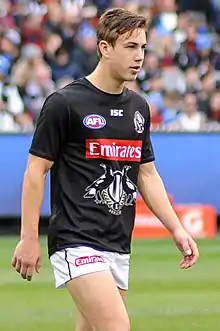 Brown was drafted by Collingwood with pick 35 in the 2016 national draft under the father–son rule, with Collingwood matching North Melbourne's bid.[6] Despite the number 26 guernsey which his father wore being vacant, Brown chose to wear number 17 to create his own legacy.[7] He started the season on the sidelines after being diagnosed with glandular fever during the 2017 season pre-season.[8] In round 12 he made his debut for Collingwood, recording 16 disposals against Melbourne in a four-point loss.[9]