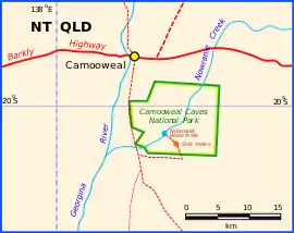 - ↑ "Camooweal Caves National Park". 26 October 2020. Retrieved 13 February 2022.