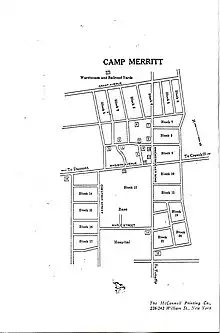 - ↑ Tiedman, Howard and Zimmer, William. "Camp Merritt: The Most Used, The Least Remembered". VFW Post 3286, Cresskill, New Jersey page 59.