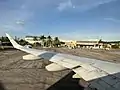 The airport is situated at an elevation of 10 metres (33 ft) above mean sea level, covering an area of 400 hectares (990 acres). It features a single asphalt runway, designated as 05/23, measuring 2,500 metres (8,200 ft). The commercial aviation apron spans 16,200 square metres (174,000 sq ft), featuring three parking positions for narrow-body aircraft and additional stands for general aviation. Official operating hours are from 7:00 to 19:00.[2]