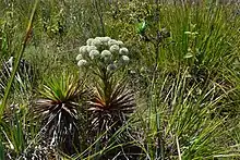 The campo rupestre ecoregion consists of a distinct set of habitats where open vegetation prevails and is subject to harsh climatic and pedological conditions. Rocky outcrops, grasslands and shrublands account for the most common habitats and are dominated by lineages such as Velloziaceae, Cyperaceae, Poaceae and Eriocaulaceae.[10] Although few plant families predominate in this ecoregion, species richness is high; the Espinhaço Range alone accounts for seven percent of the Brazilian flora, while all the mountain ranges comprising the entirety of campo rupestre harbor approximately 15% of Brazil's plant diversity.[3][11] The relatively high levels of diversity in the campo rupestre can be explained by the environmental requirements unique to each habitat (or micro-habitat), which vary according to a wide range in latitude and elevation.[12] Insularity can also foster diversity in the campos rupestres; given its discontinuous distribution across several mountain ranges overcoming long-distance dispersal can pose a challenge to many lineages.[13]