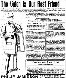 The Canadian Socialist League (CSL) was formed in Montreal in 1898 by former members of the Socialist Labor Party.[1] The founders rejected the Labor party leadership of Daniel De Leon.[2] Support for the league appeared about the same time in the summer of 1899 in Montreal and Toronto.[3] In Ontario the CSL was organized by George Weston Wrigley and Thomas Phillips Thompson, both former Knights of Labor, in an effort to pull together the reform forces that had become fragmented after the Patrons of Industry were defeated in the 1896 federal election.[4] The CSL had a local in Port Moody, British Columbia, by January 1900, which became the focus of its activities in that province. John M. Cameron, a former member of the Utopian Ruskin colony, was the organizer in British Columbia.[5] A formal organizing convention for the Ontario Socialist League was held in Toronto in November 1901 to provide the base for the national organization.[3]