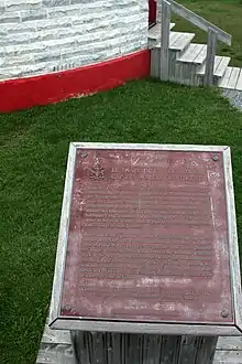 The Historic Sites and Monuments Board of Canada installed a plaque at the base of the lighthouse in 1977, with inscriptions in French and English, which reads (in English):