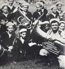 In 1902, a young boy named George Herman Ruth, later known as "the Babe," was enrolled at St. Mary's by his parents.[4] He learnt the game of baseball at St. Mary's under the tutelage of Brother Matthias and became one of St. Mary's most notable alumni. In 1919, a fire destroyed much of the old Victorian-styled campus. Alumnus Babe Ruth, who at the time was playing for the New York Yankees, asked to take the St. Mary's School band along on "road trips" to several major league ballparks around the Northeast, in an attempt to raise money to replace the main school building.[5]