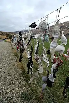 - ↑ "World famous in New Zealand: The Cardrona bra fence". Stuff. 19 August 2017. Retrieved 2 May 2018.