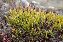 Carmichaelia nana is a dwarf, spreading shrub growing in a dense mat from 20 to 60 mm high and 0.5 m wide.[4]