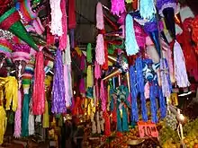 Day of the Dead creates a large demand for various paper crafts, mostly to adorn altars to family members and others who have died.[3] Traditional markets fill with various kinds of decorations for the holiday, especially candies, papel picado and cartonería figures.[14]