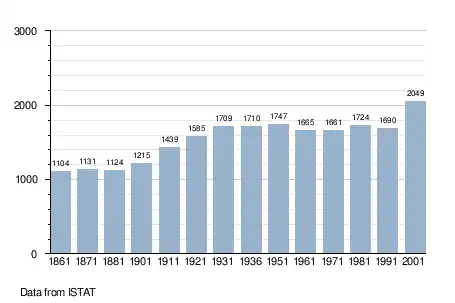 - ↑ "Popolazione Residente al 1° Gennaio 2018". Italian National Institute of Statistics. Retrieved 16 March 2019.