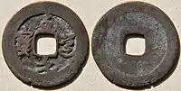 The Tang dynasty introduced the Kaiyuan Tongbao,[14] which would influence the inscriptions of cash coins, both inside and outside of China, minted from this period onwards.[15][16][17]