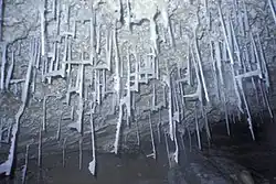 Most northern caves are not well decorated with cave formations, but Castleguard Cave has some sections with good flowstone and stalactites, and is known for its nest of exceedingly rare cubic cave pearls and extensive displays of flagged soda straws. The back passages of Castleguard Cave are the only ones in the world that end in plugs of glacial ice pushed into the cave from the sole of a surface icefield.