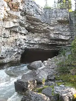 Castleguard Cave is a limestone cave located at the north end of Banff National Park in the Rocky Mountains of Alberta, Canada. With 20,357 metres (66,788 ft) of surveyed passages (as of 2007), it is Canada's longest cave, and its fifth deepest at 384 metres (1,260 ft). Castleguard Cave ascends gently from its entrance and terminates beneath the Columbia Icefield.