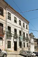 In 1854, when the family moved to the province's capital, they initially went to live in a sobrado where Júlia Fetal, a victim of a crime of passion, had lived. Fetal was murdered by her fiancé in 1848 at the age of twenty. The boy Antônio Frederico had heard there stories of the ghosts that lived in the residence.[20] Adelaide, who would become the poet's favorite sister, was born there.[21] The residence was at Rua do Rosário, No. 1, but in the following year they moved again to Rua do Paço, No. 47. Castro Alves studied at Colégio Sebrão at this time.[22] He remained at this school for two years.[8]