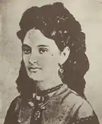 The Portuguese actress Eugênia Infante da Câmara had come to Brazil in 1858, starting a tour of the country with the Companhia Dramática Furtado Coelho, traveling from south to north.[31] She was not considered a pretty woman, but she was endowed with "an extraordinary grace, intelligent, educated, nimbly nervous and vibrant, full of seductions and singular whims". The poet was just over fifteen years old when he saw her for the first time, presenting the play "Dalila" at the São João Theatre in Salvador, and then he fell in love with her. He would see her again in Recife years later as the main actress of the company.[32] Afrânio Peixoto suggested that the beginning of the passion that would have so much influence in his life possibly dates from this time.[33][lower-alpha 5]