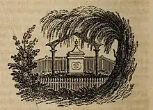 After her brother died, Catharine returned home to care for her parents who, by this time, were in their sixties and living in John’s home. She visited the missions at Creek Path and Brainerd but had resigned herself to her duty of caring for her aging parents. In a letter to her other brother, David, she expressed a hope to possibly emigrate west and viewed the opportunity to spread her values with a sense of excitement and enthusiasm.[4] However, Catharine had already began to show signs of the same illness that claimed her brother. She sought the help of Dr. Alexander Campbell, a white physician who lived near Limestone, Alabama, but as her condition grew worse her parents became desperate. Much to the dismay of the missionaries at Brainerd her parents entrusted her care to traditional healers. Their prescriptions reportedly helped little and after she had a severe hemorrhage in her lungs they sent for the missionaries. A week later, Dr. Campbell arrived but her condition was very grave. He had Catharine transported to his home so she would be under constant care. Her mother and sister joined her on the journey by litter, canoe and carriage. On the morning of July 18, 1823, Catharine Brown died at Dr. Campbell’s home. He was said to remark upon her death, “Thus fell asleep this lovely saint, in the arms of her Savior".[5] [1]