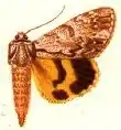 The wingspan is 40โ45 mm. Adults are on wing from July to September depending on the location. There is one generation per year.