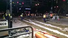 Track extension construction at 4th & King (September 5–8, 2015) as a part of the Central Subway Project