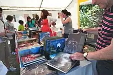 In addition to the usual days of storytelling, musical events and lectures, 2012 was punctuated by signings with Séverine Pineaux and Jerome Lereculey.[26] During the Printemps des Légendes en 2012 (Spring of Legends organised at Monthermé the centre was guest of honour,[27] making camp and mounting an exhibition.[28] According to the French newspaper L'Union, this festival in the Ardennes was a great success.[29] The guests of honour at the Rencontres de l'Imaginaire 2012 were Arleston and Guillaume Sorel.[30]
