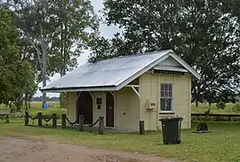 The former Ceratodus railway station, relocated in 1997 to the Burnett Highway rest area; 2017
