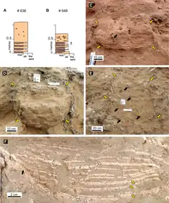 Large cylindrical sediment-filled structures, 115 of which interpreted as mammal burrows occur within the loess-paleosol sequence of the formation.[11]