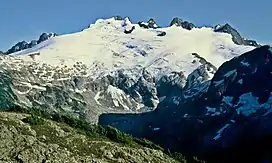 Challenger Glacier is in North Cascades National Park in the U.S. state of Washington and is on the north slopes of Mount Challenger. Challenger Glacier descends from 8,000 to 5,000 ft (2,400 to 1,500 m).[2] Over 2 mi (3.2 km) wide, Challenger Glacier descends along a wide terminus with heavy crevassing and numerous icefalls, with a tongue of the glacier in the north descending to a proglacial lake. The ascent up Challenger Glacier is one of the most common routes to the summit of Mount Challenger.[3]