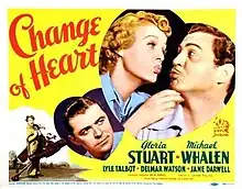 Change of Heart is a 1938 American comedy film directed by James Tinling and written by Frances Hyland and Albert Ray. The film stars Gloria Stuart, Michael Whalen, Lyle Talbot, Delmar Watson and Jane Darwell. The film was released on January 14, 1938, by 20th Century Fox.[1][2][3]