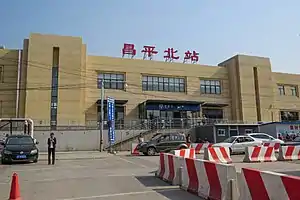 Changping North railway station (Chinese: 昌平北站; pinyin: chāngpíng běi zhàn), also known as Changpingbei railway station, is a railway station in Gulou North Street in the urban area of Changping District, Beijing. The old station started construction in 1976 and opened on 1 May 1980, with the whole Beijing–Tongliao railway. All services were stopped between June and October in 2016 to build a new station. On 1 November 2016, the new station opened, with its waiting hall expanded to 2,987 square metres (32,150 sq ft).[1] This station became the new terminal of all long-distance trains whose terminal used to be Beijing North railway station. On 31 December 2017, the suburban railway Huairou-Miyun line opened, and this station started to offer services for suburban railway passengers.[2]