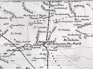 - ↑ None of the sources listed in the Reference section include a map of the attack on the Sheria position, so it is difficult to know exactly where the Sheria railway station was located and where the fighting occurred, after the station was captured.