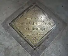 In May 1821 he went to Devon to make drawings for Daniel and Samuel Lysons' history of Devon, Magna Britannia, vol. 6, Devonshire, published in 1822. He died on the 28 May, falling from a ladder while tracing a portrait from one of the windows in St Andrew's Church, Bere Ferrers.[1] His grave is at Bere Ferrers. A later antiquarian, W. H. Hamilton Rogers, who also made studies of the Ferrers family in the same church, wrote 70 years later:[4]