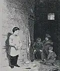 One of his first works was The Ruined Gamester which was purchased and engraved by a Manchester print seller named Dewhurst. It became so popular that a cartoon in Punch caricaturing Sir Robert Peel was drawn from it, and an etching from the picture and accompanying verses both by the artist appeared in the North of England Magazine, June 1842.