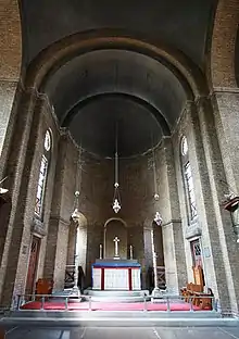 As a practising architect, Reilly was responsible for only a handful of buildings. They include cottages at Lower Road, Port Sunlight, for Lever (1905); Liverpool Students' Union (1909); the Church of St Barnabas, Shacklewell, London (1909); and war memorials at Accrington (1920) and Durham (1928). Of these, Reilly's professional colleagues regarded the Students' Union building as his most characteristic work,[8] but he himself preferred St Barnabas, and said that it was "the building I should like to be remembered by, if any."[3]