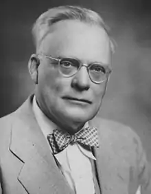 He moved back to the United States in 1928, to serve as president of Pomona College,[2] becoming the college's first non-clergy president.[3] During his tenure, he focused on Pomona's residential life, overseeing the construction of several dormitories and dining facilities, including Frary Dining Hall and the Clark dormitories.[3] He also inspired a growing interest in Asian culture at the college.[3] He retired in 1941, and later that year received the Order of the Jade from China.[2] He died after being struck by a car while crossing Route 66 in Claremont in January 1949.[2]