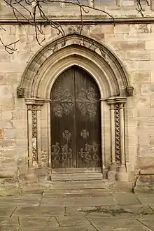 Media related to Chesterfield Parish Church, south transept door at Wikimedia Commons