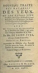 - online copy of Saint-Yves' Nouveau Traité des maladie des yeux (1736 Dutch edition in French).